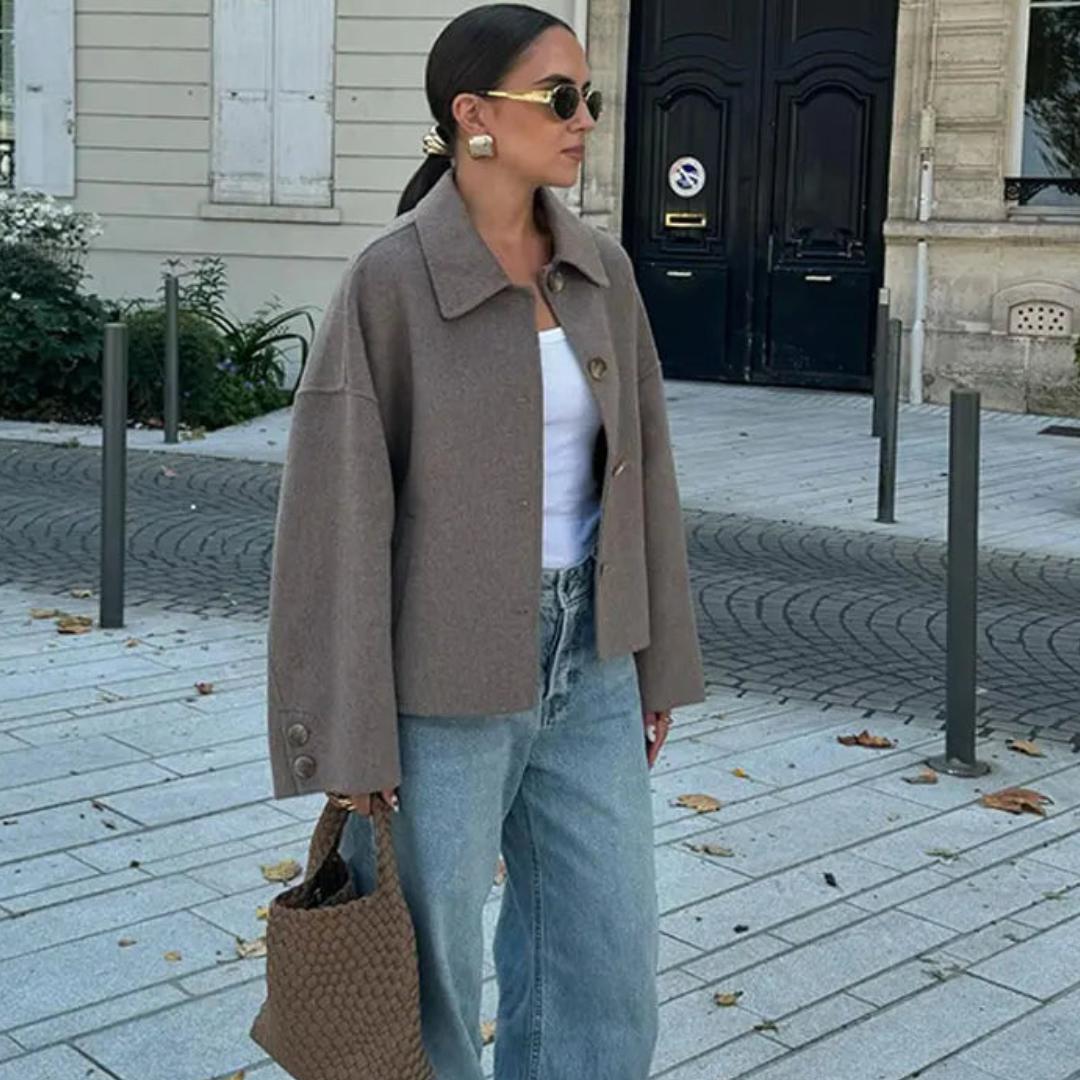 Winterjacke Damen Beige mit Lockerm Schnitt
